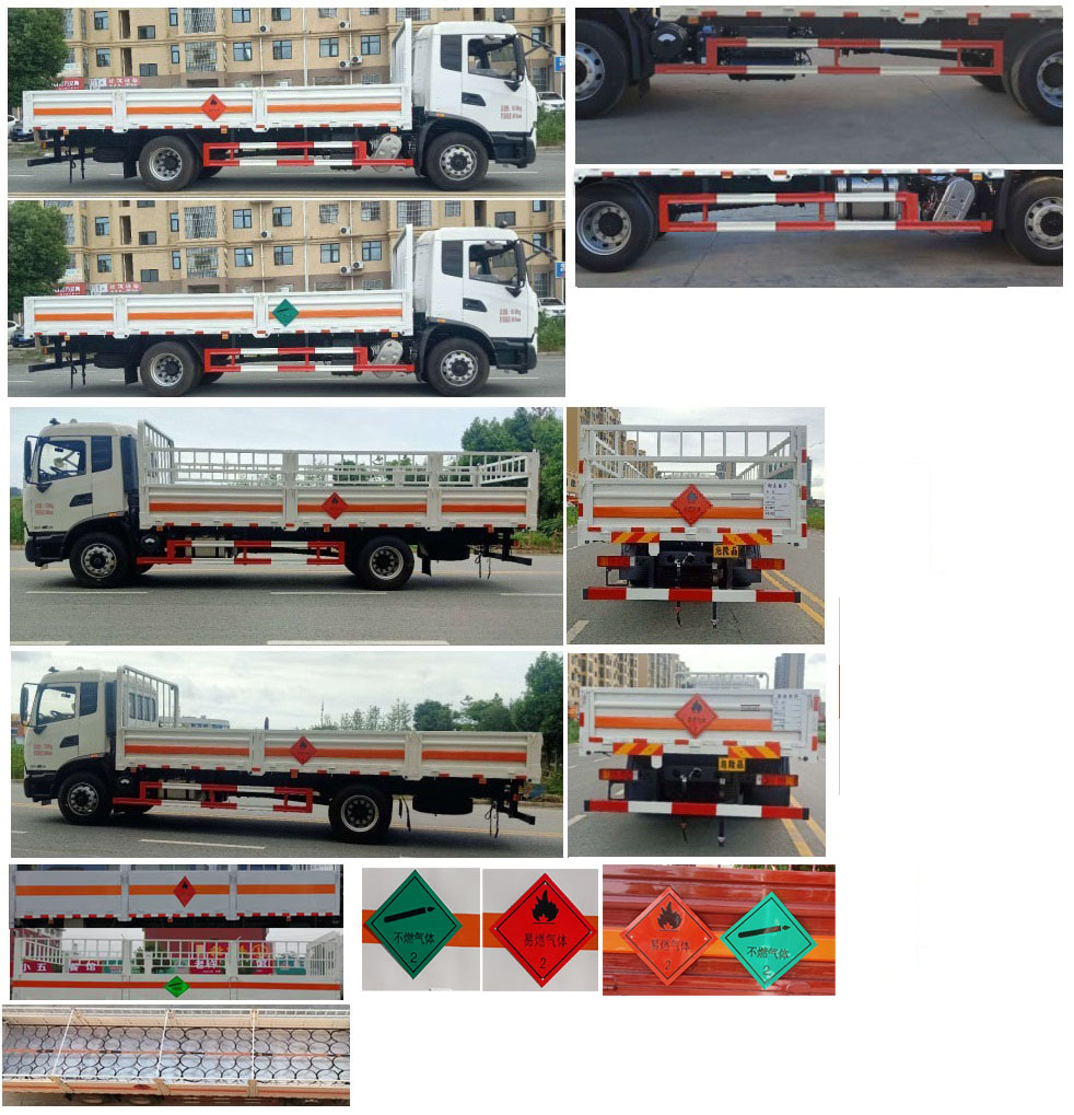 | 备注 | ABS型号:3631010-C2000,EBS5;ABS生产企业:东科克诺尔商用车制动系统(十堰)有限公司,东科克诺尔商用车制动系统(十堰)有限公司;安装有限速装置;限速装置限速(km/h):80;安装有具有卫星定位功能的行驶记录仪;选装描述:随底盘选装驾驶室,选装驾驶室前面罩.选装侧窗玻璃.选装前雾灯;选装驾驶室前脸扰流罩.随底盘选装油箱位置,选装电瓶框位置,选装储气筒位置.选装不同结构的车门裙板.选装多种平板及瓦楞结构的箱体和无栅栏样式.运输的气瓶盛装介质2.1项易燃气体时,车辆左、右侧及后部粘贴“易燃气体”标示牌,运输的气瓶中盛装介质2.2项非易燃无毒气体时,车辆左、右侧及后部粘贴“不燃气体”标示牌.该车可选装ETC车载装置. 仅选用4700mm和5000mm轴距底盘,整车长/轴距/前悬/后悬(mm)对应关系为:9150/5000/1430/2720,8600/4700/1430/2470,9150/5000/1400/2750,8600/4700/1400/2500;发动机/油耗值(L/100km)对应关系为:B6.2NS6B210/25.9,DDi50E190-60/23.4;所用材料材质、连接方式以及后部防护装置的主要尺寸参数(断面尺寸和离地高度):后部不带液压尾板时后防护装置材料:Q235,连接方式为焊接,后防护截面尺寸(mm): 120×60,下边缘离地高490mm,选装后部带液压尾板时,侧/后防护材料为Q235,连接方式焊接连接,后防护截面尺寸(mm):120×60,离地高度470mm;尾板、上下坡道(或类似装置)收起状态的水平长度(mm):液压尾板为选装件,选装液压尾板时收起状态的水平长度为298mm,尾板质量为550kg(不计整备质量之内);专用功能及装置:该车为危险品运输车辆;运输独立容器(瓶)包装的货物;AT型车辆;危险货物类项号:该车运输具有独立容器包装的易燃气体(类项号为2.1);运输具有独立容器包装的非易燃无毒气体(类项号为2.2);其他说明:仅采用装配前轮盘式制动器、前置排气管、子午线轮胎、后轴装配空气悬架、转向轮安装轮胎爆胎应急防护装置的底盘; | ||