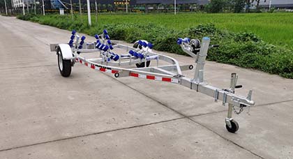 | 备注 | 侧后防护情况:侧后防护由车身构件代替,后部下边缘离地高度350mm;中置轴挂车的牵引杆深入量(mm):30;中置轴牵引杆连接器最大负荷(kg):20;其他说明:该车用于运输摩托游艇,侧面和后部粘贴有反光标识; | ||
