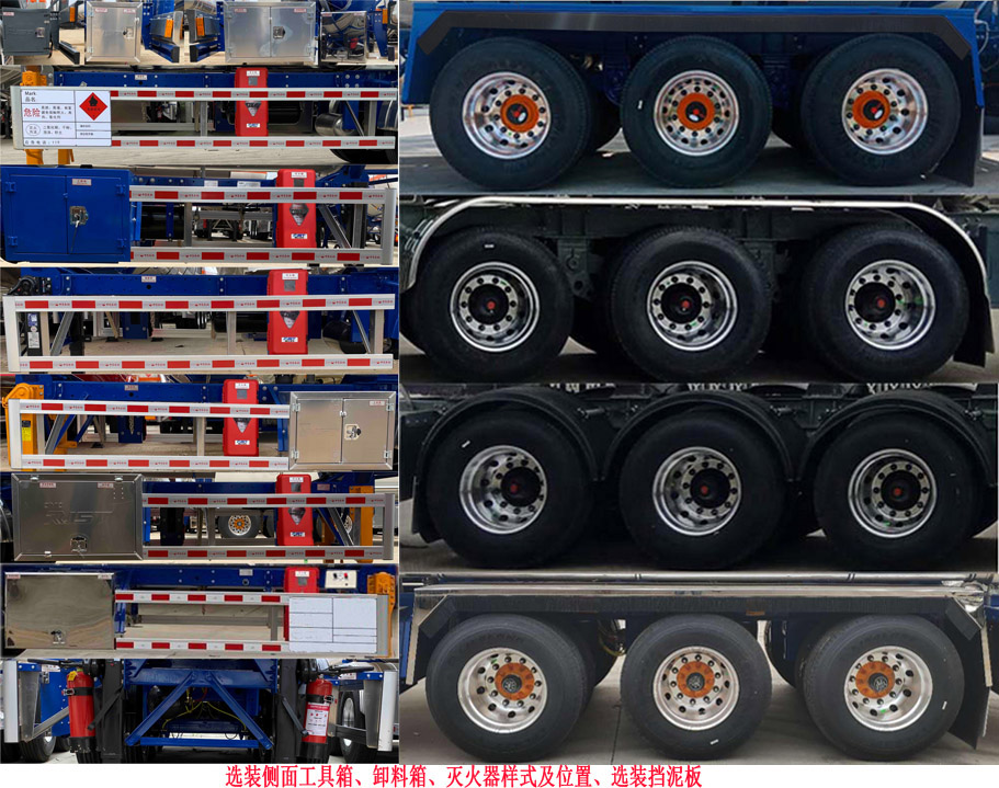 | 备注 | ABS型号:4005000810,CM2XL-4S/2M,K068353XXX,VIE-TABSⅡ;EBS型号:K11061XVXX;ABS生产企业:威伯科汽车控制系统(中国)有限公司,广州瑞立科密汽车电子股份有限公司,克诺尔商用车系统企业管理(上海)有限公司,浙江万安科技股份有限公司,EBS生产企业:克诺尔商用车系统企业管理(上海)有限公司;选装部件名称及其相关描述:选装灯支架,选装后爬梯结构,选装后部卸料箱结构,选装后防护结构,选装顶部结构,选装多种胶管箱,选装背带布置形式,选装多种蒙皮结构,选装侧面工具箱、卸料箱位置,选装灭火器样式及位置,选装挡泥板;所用材料材质、连接方式以及后部防护装置的主要尺寸参数(断面尺寸和离地高度):侧防护材质为铝合金,后防护材质为碳钢,连接方式均为螺栓连接式,后防护离地高度为480mm,后部防护装置的断面形状尺寸(mm):槽型150×60,选装后部防护装置的断面形状尺寸(mm):矩形150×60;罐体有效容积(立方米)、罐体外形尺寸(mm):罐体有效容积为37.3立方米,罐体外形尺寸(长×宽×高)(mm):保温层厚50时外罐体长9850,外径前φ2208后φ2408.保温层厚100时外罐体长9950,外径前φ2308后φ2508.内罐体长9750,外径前φ2108后φ2308;危险货物类项号:3,危险货物运输车辆类型:FL;采用适用于牵引危险品半挂车的牵引车; | ||