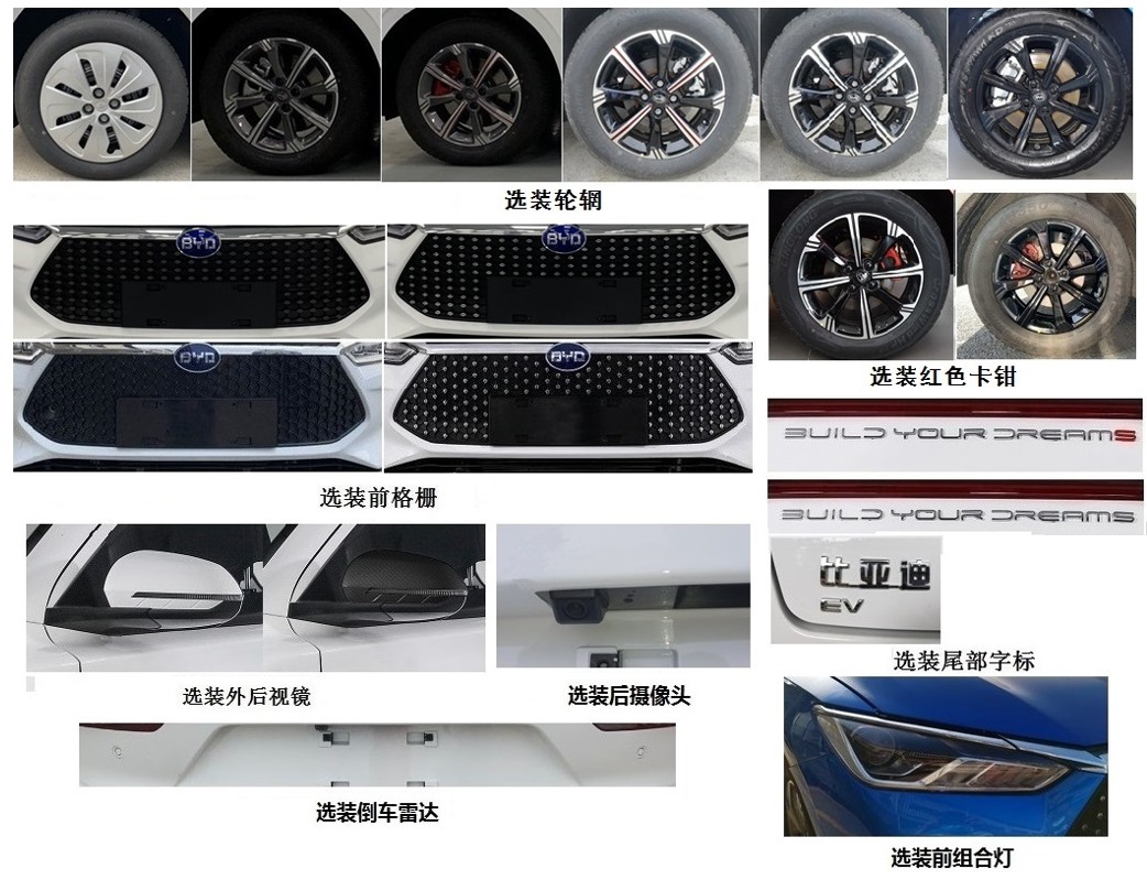 | 备注 | ABS型号:ESP;ABS生产企业:博世汽车部件(苏州)有限公司;储能装置种类:磷酸铁锂蓄电池;储能装置生产企业:重庆弗迪锂电池有限公司;选装部件名称及其相关描述:选装轮辋,红色卡钳,前格栅,外后视镜,后摄像头,倒车雷达,尾部字标,前组合灯;其他说明:驱动电机类型:永磁同步电机,型号:TZ180XSB,额定功率:35kW,峰值功率:70kW,生产企业:长沙市比亚迪汽车有限公司;该车型可选装ETC车载装置; | ||