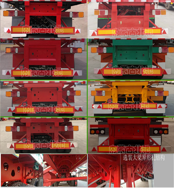 | 备注 | ABS型号:HNABS4S/2m-4S/4m;ABS生产企业:山东海纳汽车科技有限公司;选装部件名称及其相关描述:每侧可选4扇门,5扇门,6扇门,选装侧面栏板样式,栏板选装竖瓦楞,方管十 字花样式,选装吊开门和下开门,选装对开门样式,选装对开门半截锁杆,选装侧面合页样式,选装 前挡板结构,选装后部样式,选装号牌板样式,选装尾部标志板的安装位置,后部选装1只后牌照灯, 选装液压油箱的安装位置,油箱可选装圆形或方形,选装后组合灯方形/雾灯为圆形结构;所用材料材质、连接方式以及后部防护装置的主要尺寸参数(断面尺寸和离地高度):,侧、后防护材料均采用Q235,连接方式:侧下部防护装置用螺栓连接/后下部防护装置用焊接连接,后防护截面尺寸为140×55(mm),离地高度为480mm;;自卸方式为侧卸式; | ||