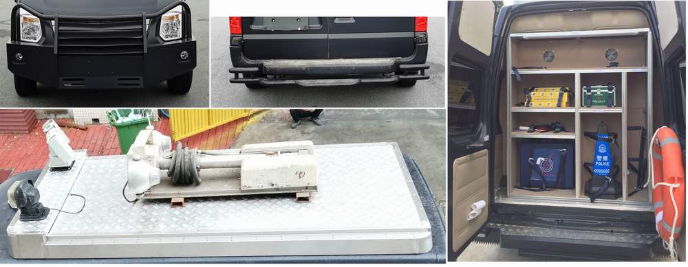 | 备注 | ABS型号: 6C11 2M110 A*或CC11 2C405 A*或EV7021;ABS生产企业:博世汽车部件(苏州)有限公司;安装有限速装置;限速装置限速(km/h):100;发动机净功率值:101KW;选装描述:可选装ETC车载装置;最后排座椅后方安装具有足够强度的板式隔离装置;专用功能及装置:车顶部安装有车顶平台,云台摄像机,搜索灯,宣传广播,升降照明灯,车辆前挡风玻璃,左右侧窗都安装有防暴钢网,前挡风钢网,车辆前部有防撞保险杠,车辆后部有后保险杠和后踏步,车辆尾部安装有储物层柜,用于存放处突装备和巡逻设备,车尾门安装有爬梯;;其他说明:该车主要用于在各种工况下的现场数据收集、数据传输、数据接收、防暴运兵、巡逻、处突、装备运输、宣传广播等功能,不装前防撞保险杠和后踏步时整车长5780,前悬933,后悬1097,装有前防撞保险杠和后踏步时整车长6077,前悬1120,后悬1207,装有前防撞保险杠和后保险杠时,整车长5990,前悬1120,后悬1120,顶高(车高2660mm,VIN号为LJXBMDJD;车高2890mm,VIN号为LJXBHDJD); | ||