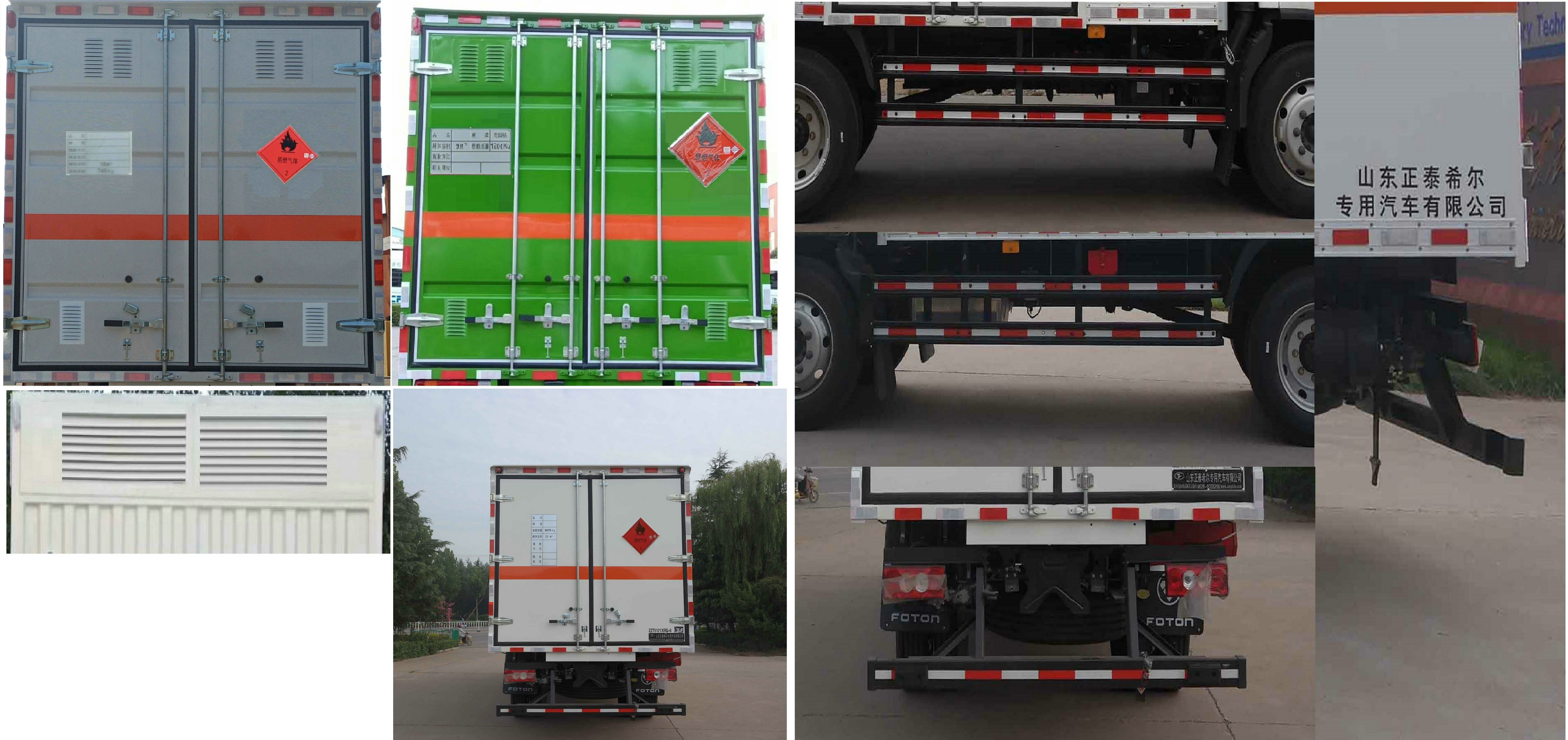| 备注 | 厢体顶部封闭,不可开启;该车车身侧面及后部粘贴橙色反光标识和易燃气体标志牌,在车体后部设置安全标示;该车为危险品运输车;厢体选装无侧门;选装多种形式的侧开门;选装不同形式的后门拉杆;选装不同形式瓦楞工艺厢体;前部选装通风孔;后部选装通风窗;选装无液压尾板时,后防护装置材料为510L-6.0-GB/T709,与车辆连接方式为螺栓连接,后防护断面120×70mm,离地高470mm;仅选用底盘3800mm轴距;运送危险品类项号:2.1;2.2;侧防护装置材料为冷板B-1.5-BG/T708,与车辆连接方式为螺栓连接;尾板收起状态的水平长度295mm,尾板总质量1000KG,尾板额定载荷1500KG;后防护装置材料为Q235圆管-2.0,与车辆连接方式为螺栓连接,后防护断面直径120mm,离地高500mm;ABS生产厂家/型号:1.广州瑞立科密汽车电子股份有限公司/ABS-VI.E;2.威伯科汽车控制系统(中国)有限公司/ABS-E.;安装具有卫星定位功能的行驶记录仪;仅采用前盘制动和限速装置的底盘;排气管前置;仅用子午线轮胎;仅选用底盘发动机F3.8NS6B156,最大净功率为112kw,油耗对应关系:F3.8NS6B156(21.02);该车型可选装ETC车载装置;转向轮安装爆胎应急防护装置 | ||
