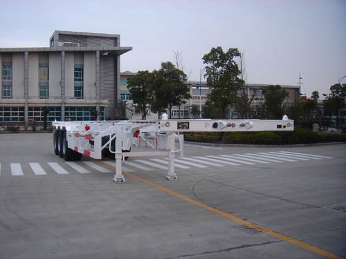 备注 该车用于运输40英尺集装箱,牵引销处车架总高度90mm.该车可装空气悬挂.该车中部可选装加强横梁及锁头、后端的小平台,选装工具箱,牌照板结构,挡泥板.选装牵引销处外形照片及牌照板照片.ABS厂家、型号:浙江万安科技股份有限公司,VIE-TABSⅡ或威伯科(上海)管理有限公司,4005000880或广州市西合汽车电子装备有限公司,XH-GQ4S2M-E01或广州瑞立科密汽车电子股份有限公司,CM2XL-4S/2K(4S/2M)或翰德汽车产品(苏州)有限公司、364570001.侧防护材料为Q235或铝合金,螺栓连接;后防护材料为Q235,焊接式,断面尺寸75×150mm,离地高500mm.