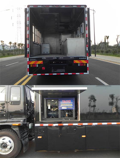 | 备注 | 车厢顶部封闭不可开启。随底盘选装宽前保险杠。车顶可选装场地照明灯,排烟管防雨罩,选装场地照明灯或防雨罩时车高3850mm。配备发电机,冰箱,蒸饭柜,炒菜台,餐具存放柜等专用装置。该车型具有客车裙边的侧防护及后防护,侧防护裙边离地最大距离360mm,后防护裙边离地最大距离550mm。ABS型号:APG3550500H1,ABS生产企业:浙江亚太机电股份有限公司。发动机净功率150kW。 | ||
