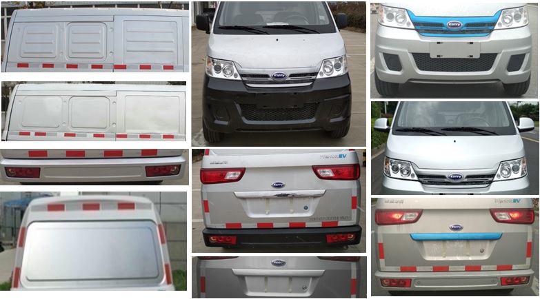 | 备注 | 选装黑色前后保险杠、外后视镜造型、刚性板式隔离装置造型、轮辋造型、侧盲窗造型、后盲窗造型、倒车雷达、PVC地毯、银色后牌照灯护板、银色前格栅。储能装置种类为磷酸铁锂蓄电池,单体和储能装置总成生产企业均为合肥国轩高科动力能源有限公司。驾驶区与货舱之间用刚性板式隔离装置有效隔离,货舱部分使用金属盲窗。发动机型号为驱动电机型号,功率为驱动电机峰值功率。 | ||