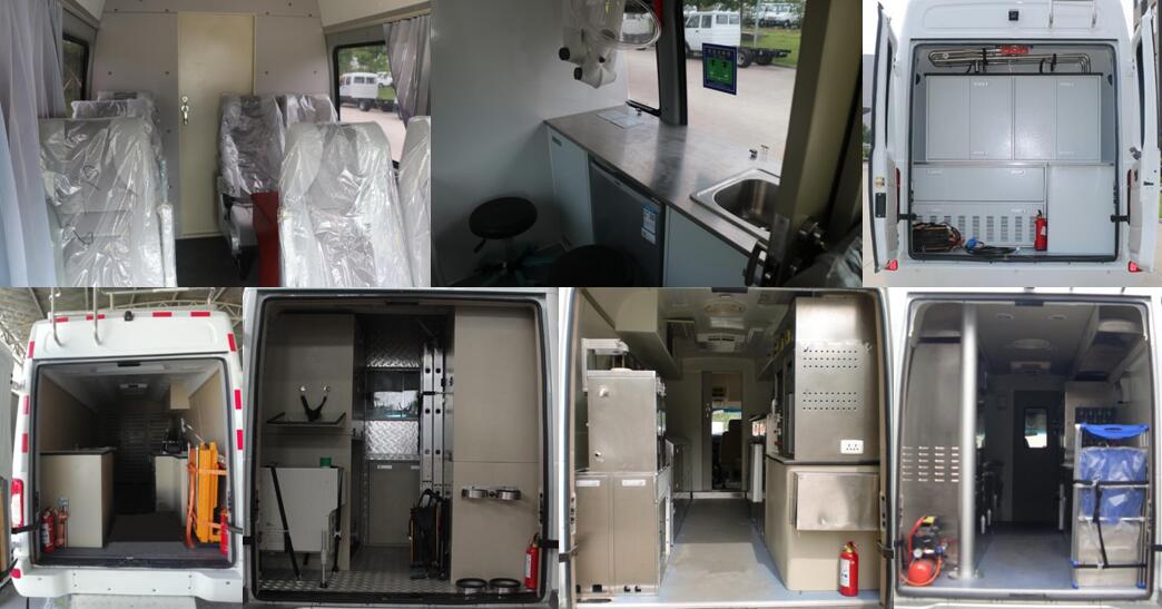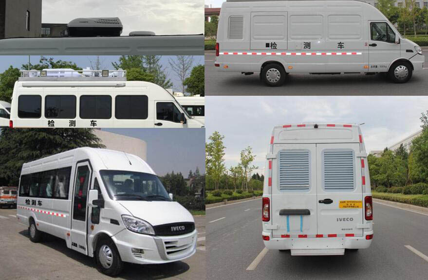 | 备注 | 1.随底盘选装电动门,选装限速装置时,可选最高车速80km/h或100km/h,ABS系统控制器型号:BOSCH ABS8, ABS系统控制器生产企业:博世汽车部件(苏州)有限公司,发动机最大净功率105kW、93KW,装备带卫星定位功能的行驶记录仪;2.选装四周照明灯、高杆照明灯、排烟管、侧后部百叶窗、上掀门、前额凸台,可不选装车顶平台、换气扇、顶置空调、喇叭天线、后爬梯、后上车踏板,侧后部可不封盲窗或封部分盲窗;3.车顶无选装时整车高度为2740mm(多片簧2820mm),选装换气扇时整车高度为2820mm(多片簧2900mm),选装排烟管时整车高度为2850mm(多片簧3040mm),选装车顶平台及围栏、四周照明灯时整车高度为2930mm(多片簧3010mm),选装高杆照明灯、顶置空调时整车高度为2990mm(多片簧3075mm),选装喇叭天线时整车高度为3360mm(多片簧3440mm);4.整车长6940mm,不选装后上车踏板、后上车爬梯时整车长为6880mm;5.车内装有检测工作台、设备柜,用于食品、药品、卫生、环保等方面的流动检测;6.额定载客人数为2人时整备质量为4400kg,额定载客人数为3-6人时整备质量为4300kg、4150kg,额定载客人数为7-9人时整备质量为4000kg、3850kg。 | ||