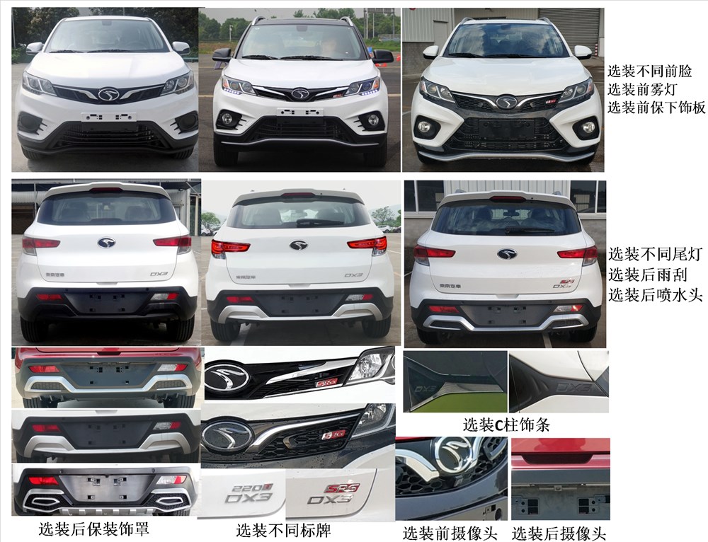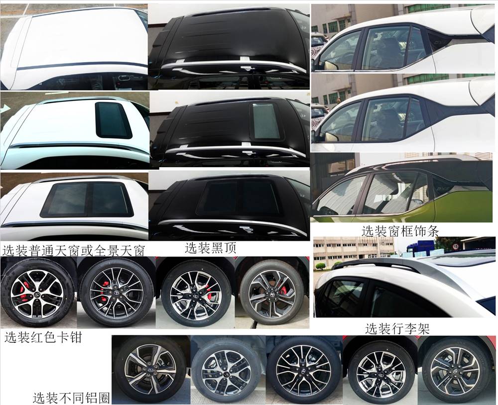 | 备注 | 选装不同前脸、前雾灯、前保下饰板、不同尾灯、后雨刮、后喷水头、C柱饰条、后保装饰罩、不同标牌、前摄像头、后摄像头、普通天窗、全景天窗、黑顶、窗框饰条、不同铝圈、红色卡钳、行李架、上车踏板、不同后视镜、后视镜摄像头、不同门把手、可选双色车身。无车顶行李架时整车高度1654mm,安装车顶行李架后整车高度1670mm。ABS 型号:MK100,厂商:大陆泰密克汽车系统(上海)有限公司。发动机最大净功率:100kW。 | ||
