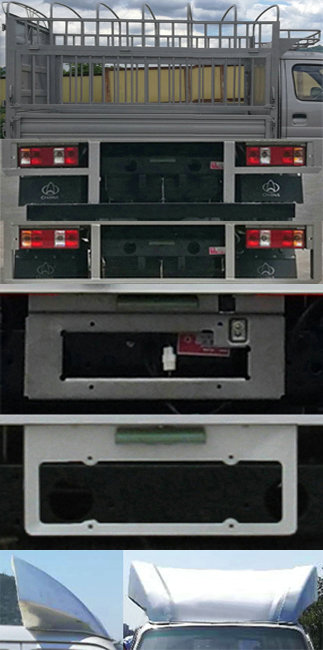 | 备注 | 1.选装部件:随底盘选装前雾灯,不同造型前保险杠,前中网,不同型号后视镜,选装导流罩,仓栅样式,电动门窗,中控锁,空调,MP5,倒车可视,号牌板.2.货箱底板至仓栅顶部高度为1550时整车高度为2470,货箱底板至仓栅顶部高度为1650时整车高度为2570.3.ABS控制系统型号/生产企业/控制方式:YF8/武汉元丰汽车电控系统有限公司/四通道式. | ||