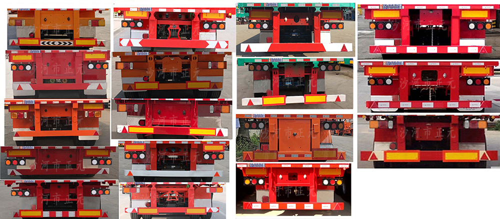 | 备注 | 车厢底板至仓栅顶部高度及对应总高度为2400mm(3980mm,3900mm),2200mm(3780mm,3700mm),2000mm(3580mm,3500mm),1800mm(3380mm,3300mm),选装长锁杠或短锁杠对开门仓栅结构,可选装两层,三层仓栅,后部选装花栏式后门,三开扇式后门,对开式半封闭后门,对开全封闭样式,后门厢板可为竖瓦楞,方管平板后门;选装整车货厢栏板样式,选装前挡板带篷布框样式,选装侧面厢板样式,选装内置锁具,选装圆形立柱样式,选装空气悬架,选装大梁异形孔结构,选装后部结构,选装后组合灯为方形/雾灯为圆形结构,一,ABS:HNABS4S/2m-4S/4m,生产厂家:山东海纳汽车科技有限公司,二,侧、后防护材料均采用Q235B,连接方式:侧下部防护装置用螺栓连接/后下部防护装置用焊接连接,后防护截面尺寸为140×50(mm),离地高度为480mm,车长/轴距/后悬/牵引销至车辆最前端的距离尺寸对应关系(mm):13000/6880+1310+1310/2300/1200,13000/6780+1310+1310/2300/1300,13000/6680+1310+1310/2300/1400,12500/6480+1310+1310/2100/1300,12000/6280+1310+1310/1800/1300 | ||