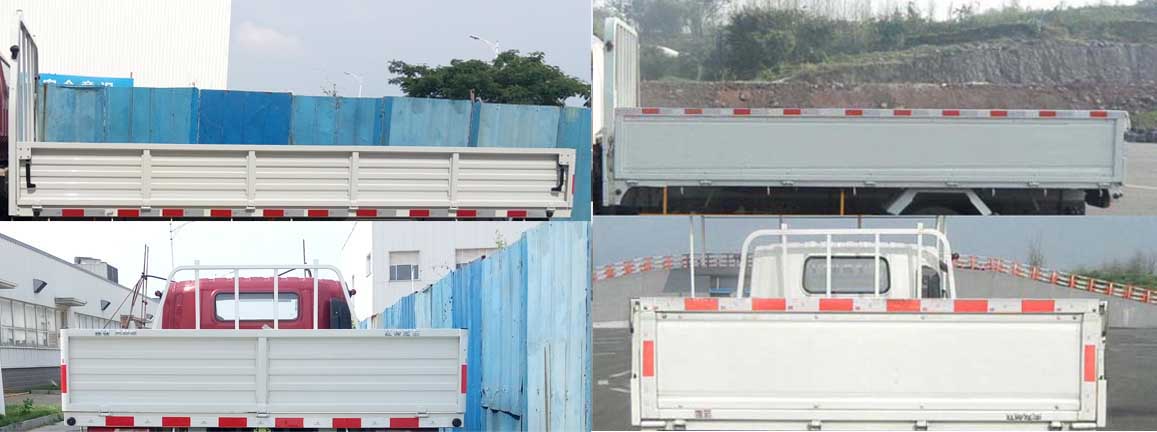 | 备注 | 1、侧面防护装置材料:Q235,连接方式:螺栓连接;后下部防护装置材料:WL440-3.0,连接方式:螺栓连接,断面尺寸:100mm×45mm,离地高度:466mm。2、货厢尾部仅采用一级反光标识粘贴。3、ABS系统型号:VIE ABS-II,ABS系统生产厂家:浙江万安科技股份有限公司。4、发动机最大净功率:112kw。5、整车宽度(mm)/货箱栏板内宽(mm)/栏板内高(mm)尺寸对应关系为:2190/2100/440、2390/2300/550。6、选装短杆框架后视镜,该后视镜仅匹配2100mm内宽货箱,可选装不带前雾灯,选装2100mm内宽栏板时选用相应侧防护。7、选装竹胶板栏板货箱。8、选装白色车轮轮毂样式。9、选装油箱样式。10、选装前下防护装置样式。 | ||