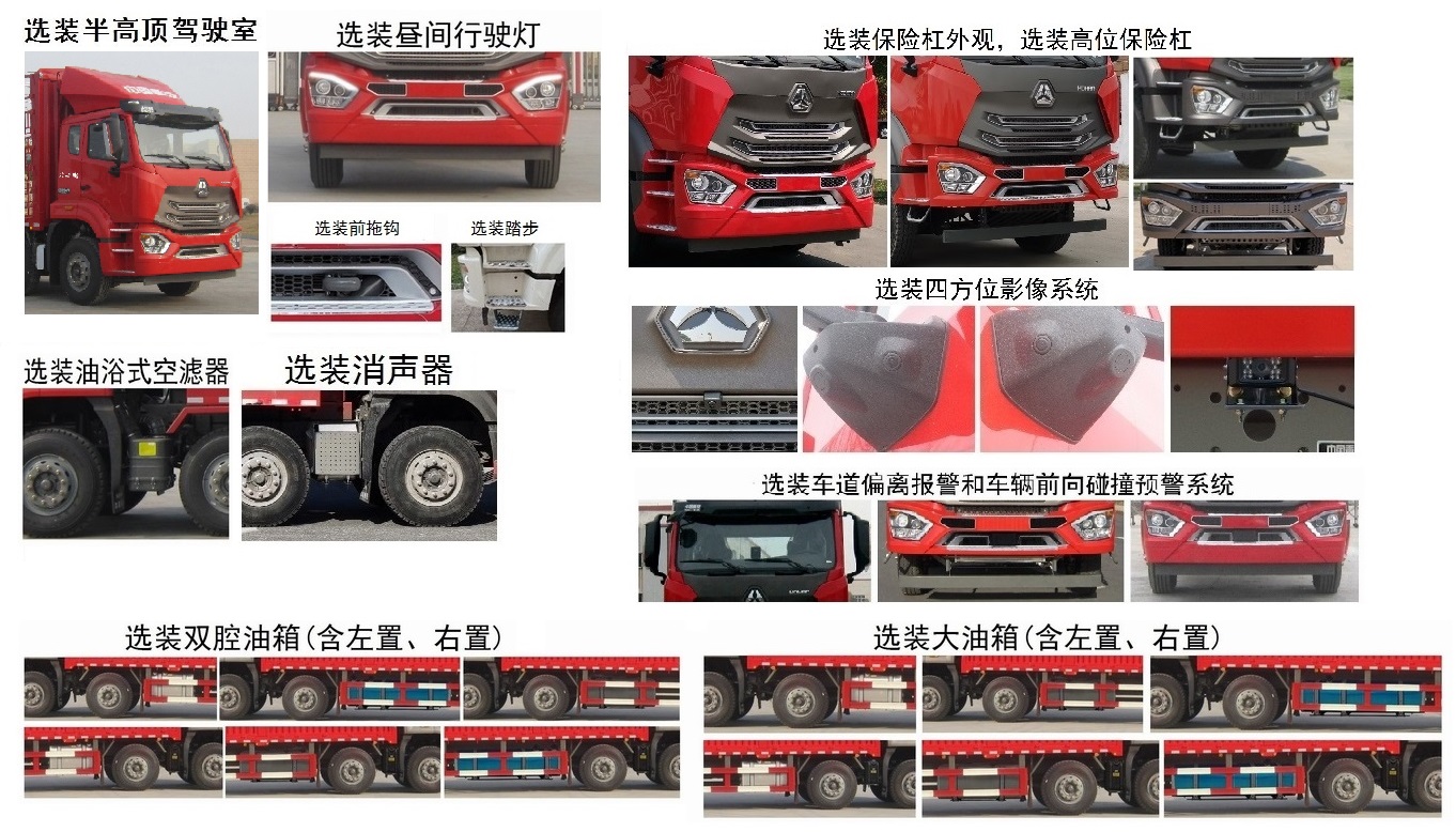 | 备注 | 该车可选装半高顶或高顶驾驶室,同时可不选装导流罩。选装昼间行驶灯。该车可不选装副保险杠和第三级上车踏板。货箱底板距栅栏顶部为2500mm。该车可选装货厢外观结构。驾驶室准乘人数与额定载质量参数一一对应。侧面防护装置所用材料材质:Q235A,连接方式为螺栓连接。后部防护装置所用材料材质:Q235A,连接方式为螺栓连接,断面尺寸为100×100mm,离地高度为530mm。该车可选装限速装置,限速79km/h。该车可选装油浴式空滤器。ABS系统型号为446 004 6300,ABS生产企业为威伯科汽车控制系统(中国)有限公司。安装具有卫星定位功能的行驶记录仪。该车选装D10.34-50、D10.38-50发动机对应的油耗申报值均为40.1L/100km。选装MC11.36-50、MC11.40-50、MC11.44-50发动机发动机对应的油耗申报值均为40.3L/100km。该车仅选装二类底盘的1800+4600+1350mm,1800+4575+1400mm轴距。 | ||