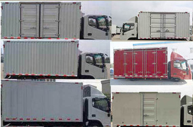 | 备注 | 1.车厢顶部封闭不可开启,选装导流罩,选装天窗;2.选装右侧双开门货厢以及不开门货厢和单开门货箱,货厢材料可选用瓦楞板,铁平板,铝平板,彩钢板;3.随底盘选装排半驾驶室;4.发动机WP3Q130E50,HFC4DE1-1D,HFC4DA1-2D,D25TCIE1,HFC4DB2-1D2对应的油耗申报值(L/100km)为17.8,17.9,17.7,17.8,17.4;5.侧面及后下部防护装置材料为Q235,连接方式为螺栓连接,后部防护装置断面尺寸(长×宽):120mm×60mm,离地高度为480mm;6.选装液压尾板,尾板收起状态的水平长度为295mm;7.选装具有卫星定位功能的行驶记录仪;8.ABS控制器型号/厂家:ABS 8/克诺尔制动设备(上海)有限公司,选装不同型号和厂家的ABS,其选装的厂家/型号有:武汉元丰汽车电控系统有限公司/YF8,广州瑞立科密汽车电子股份有限公司/CM4XL-4S/4M;9.选装侧防护,选装后防护,选装的侧面及后下部防护装置材料为Q235,连接方式为螺栓连接,选装的后部防护装置断面尺寸(长×宽):120mm×60mm离地高度为490mm.10.选装带有昼间行驶灯的前组合大灯;选装具有电加热功能的后视镜。 | ||