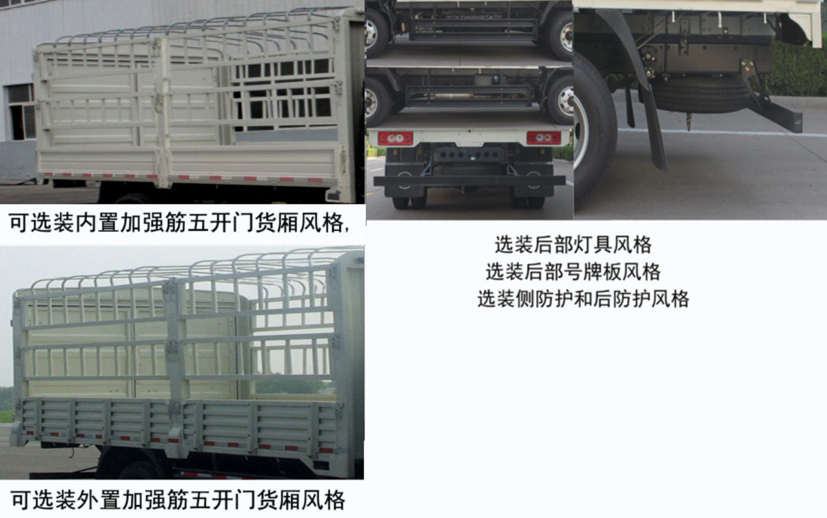 | 备注 | 货厢底板到仓栅顶部高度为2150,2300mm,分别对应整车高度为3320mm,3470mm,侧面防护装置的所用材料材质为冷板B-2.0-GB/T708,后下部防护装置的所用材料材质为异型管20-D-1-100×50×3,支架材料为热板A-6/Q235A,连接方式为螺栓连接,位置不可调整,后部防护装置的断面尺寸为100×50mm,离地高度为475mm.ABS型号为CM4XL-4S/4M,生产厂家为广州瑞立科密汽车电子股份有限公司,发动机YNF40E1对应油耗值为12.3L/100km.可选装导流罩,可选装新前围及前部灯具,选装侧围附件,可选装后部灯具,可选装后部号牌板风格.可选装内置加强筋五开门货厢风格,可选装外置加强筋五开门货厢风格.可选装侧、后防护风格,选装的侧防护材料为冷板B-2.0-GB/T708,后防护材料为异型管20-D-1-100×50×3,离地高度为495mm. | ||