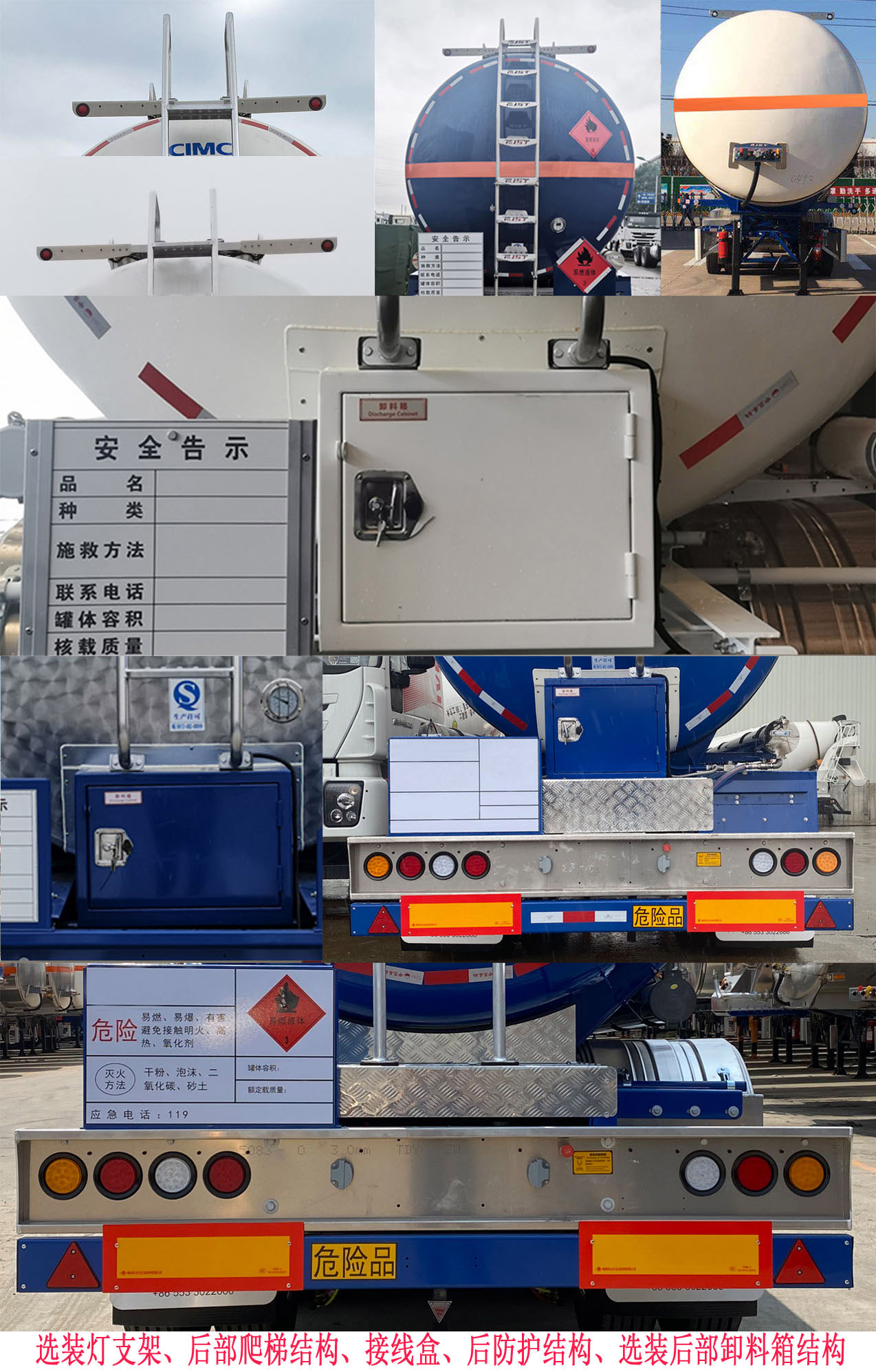 | 备注 | 罐体有效容积为46.5立方米.保温前罐体外形尺寸(长×宽×高)(mm):罐体长12443,外径前Φ2050,外径后Φ2250;保温后罐体外形尺寸(长×宽×高)(mm):罐体长12643,外径前Φ2250,外径后Φ2450.运输介质: FL,类项号:3,选装顶部结构,挡泥板,灯支架,多种胶管箱,选装空气悬架.ABS生产厂为威伯科汽车控制系统(中国)有限公司,型号为:4005000810;广州瑞立科密汽车电子股份有限公司,型号为CM2XL-4S/2M;广州市西合汽车电子设备有限公司,型号为XH-GQ4S2M-E01;浙江万安科技股份有限公司,VIE-TABSⅡ.侧、后防护材质均为铝合金,连接方式均为螺栓连接式,后防护离地高度为480mm,后部防护装置的断面尺寸(mm):150×60.牵引车采用适用于牵引危险品运输半挂车的牵引车. | ||