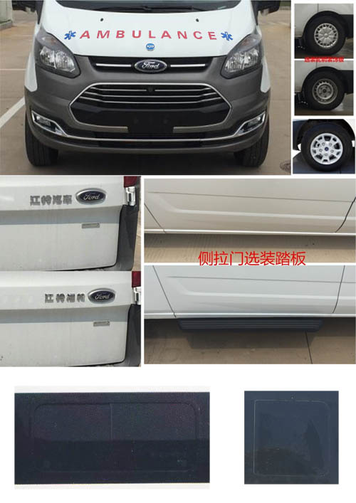 | 备注 | 随原车可选装轮辋样式,前脸,侧拉门踏板,尾部标识,左右侧双移门,两侧推拉窗,ABS系统控制器型号:EV5051,生产厂:博世汽车部件(苏州)有限公司,发动机最大净功率:147kW。配备医疗器械柜、担架系统、供氧系统、特种车辆标志灯、警报器等专用装置,急救舱左侧可选装全盲窗或半盲窗配置,选装后尾翼或车顶换气扇高度2450mm,选装车顶警灯高度2480mm,不选装后尾翼高度2407mm,车顶四周可不装或选装不同数量爆闪警灯与照明灯。 | ||