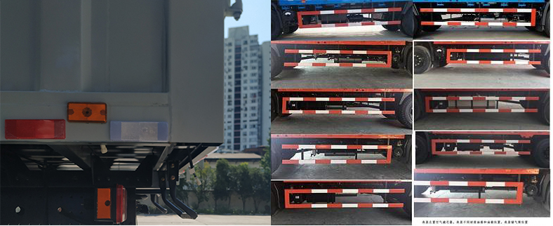 | 备注 | 随底盘选装排半驾驶室;选装厚顶驾驶室;驾驶室前围选装扰流板;驾驶室卧铺侧窗选装装饰板;驾驶室顶部选装导流罩;选装前雾灯;选装前面罩;驾驶室顶部装饰灯为选装件.侧防护:材质Q235,螺栓连接;后下防护:材质Q235,螺栓连接,断面尺寸100X50mm或120X60mm,离地高度540;厢体顶部封闭,不可开启,侧面选装开门和不开门,选装不同形式侧门,厢体选装平板和瓦楞板结构.选装液压尾板,尾板收起状态时的水平长度为295mm.安装具有卫星定位系统的行驶记录仪.装有ABS,ABS型号:3631010-C2000,ABS厂家:东科克诺尔商用车制动系统(十堰)有限公司.随底盘选装排气管前置,选装盘式制动器,选装限速装置,限速80km/h或89km/h. | ||