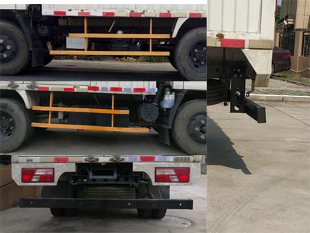 | 备注 | 车厢顶部封闭,不可开启。厢体右侧选装侧开双门、侧开单门、不侧开门。选装平板厢体。随底盘选装不带前雾灯。ABS系统型号:47660 2ZS00,ABS系统生产厂家:浙江亚太机电有限公司。侧面防护装置材料:Q235,连接方式:螺栓连接;后下部防护装置材料:Q235B,连接方式:螺栓连接,断面尺寸:120毫米×42毫米,离地高度:510毫米。扩展另一种后防护装置,该防护断面尺寸为100毫米×45毫米,装配该后防护装置时,离地高度390毫米。 | ||