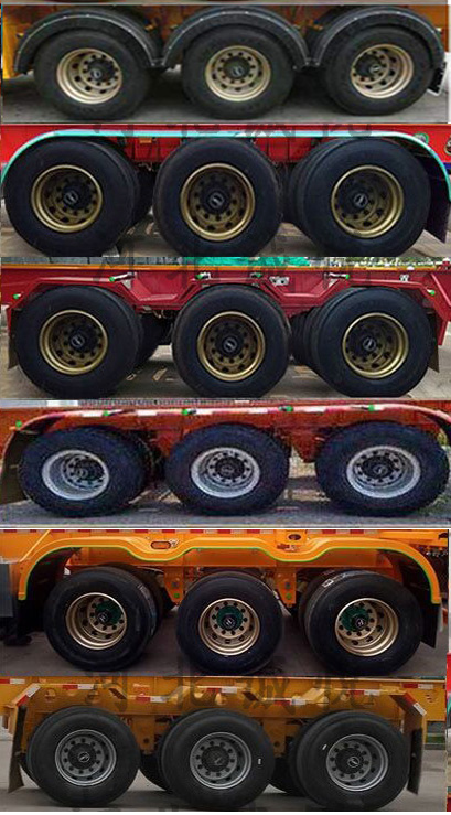 | 备注 | 该车用于运输40英尺集装箱.牵引销处的车架总高度为90mm,选装不带导向块时高度为1450mm,1400mm,选装空气悬架,选装前部结构,选装侧面样式,选装轮胎护瓦样式,选装大梁异形孔结构,选装后组合灯/雾灯为圆形结构,一,ABS:型号:CM2XL-4S/2M;生产厂家:广州瑞立科密汽车电子股份有限公司.二,防护:侧、后防护材料采用Q235B,连接方式:侧下部防护装置用螺栓连接/后下部防护装置用焊接连接,后防离地高度为480mm,后防护截面尺寸为140mm×55mm,车长/轴距/后悬/牵引销至车辆最前端的距离尺寸对应关系(mm):13000/7480+1310+1310/1450/1450,13000/7180+1310+1310/1750/1450,12450/7180+1310+1310/2050/600,12450/6880+1310+1310/2450/500 | ||