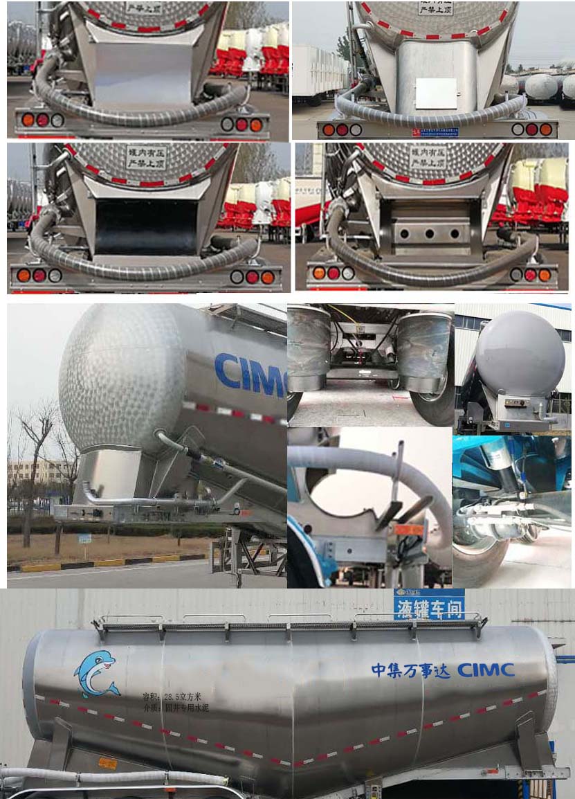 | 备注 | 该车为铝合金罐体,有效容积为28.5立方米,罐体外形尺寸(长度*宽度*高度)mm:8660(含封头)*2500*3020mm,封头直径为φ2008mm,最大截面高度3020mm,运输介质:固井专用水泥,密度为:1200千克/立方米;机组可以选装,不带机组时对应的 外形尺寸为:8800×2550×3995mm,对应的整备质量为5300kg.选装空气悬架,选装盘式制动器.ABS系统厂家为广州市西合汽车电子装备有限公司,广州瑞立科密汽车电子股份有限公司,威伯科汽车制动系统(中国)有限公司,型号分别为:XH-GQ4S2M-E01,CM2XL-4S/2M,400500×××0;侧,后防护栏材质均为铝合金,与车架的连接方式均为螺栓连接,后防护栏断面尺寸(mm)为140×50mm,离地高度为500mm.顶部封闭不可开槽,后部不可开启, | ||
