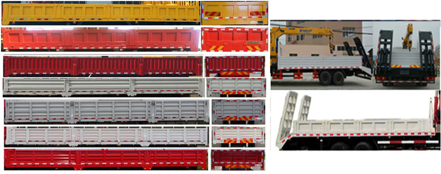 | 备注 | 1、随底盘选装驾驶室,选装箱板结构,选装上/中座椅操作,选装后爬梯,选装后支腿;2、可选装直臂式或折臂式吊机,直臂式吊机:型号/吊机质量(kg)/最大起升载荷(kg)/额定载质量(kg)/整备质量(kg)分别为:(QYS-12,SQS300,HCS300A-4,URV1200,SPS30000,ST300,KS2505,DFSQ300,SQS350,SPS35000)/10000/10000/7155/17350,(QYS-10,SQS250,URV1004,SPS25000,DFSQ250)/8000/8000/8855/15650;折臂式吊机:型号/吊机质量(kg)/最大起升载荷(kg)/额定载质量(kg)/整备质量(kg)分别为:(SQZ600)/10000/10000/7155/17350,(SQZ300)/8000/8000/8855/15650;3、外形尺寸长/带后爬梯货箱尺寸长/无后爬梯货箱尺寸长:10620/6500/7200,11000/6800/7500,11950/7800(7500)/8500(8200);4、侧后防护装置材质均为Q235A,连接方式为螺栓连接,后防护装置的断面尺寸(长×宽)mm:120×50,离地高度:480mm;5、该车装备有具有卫星定位功能的行驶记录仪;6、ABS型号为:JABS,生产厂家为:焦作博瑞克控制技术有限公司;7、外形尺寸长/轴距/前悬/后悬对应关系为:10000/4350+1300/1250/3100,10000/4350+1300/1450/2900,10200/4350+1300/1450/3100,10620/4750+1300/1250/3320,10620/4750+1300/1450/3120,10820/4750+1300/1450/3320,11000/5350+1300/1250/3100,11000/5350+1300/1450/2900,11350/5350+1300/1250/3450,11350/5350+1300/1450/3250,11950/5850+1350/1250/3500,11950/5850+1350/1450/3300,12000/5850+1350/1450/3350;8、选用底盘YC6A240-50,ISB210 50,WP7.270E51,YC6A270-50,ISD245 50,WP6.245E50发动机,油耗对应值为37.3L/100km,37.3L/100km,37.1L/100km,37.3L/100km,37.2L/100km,36.9L/100km. | ||