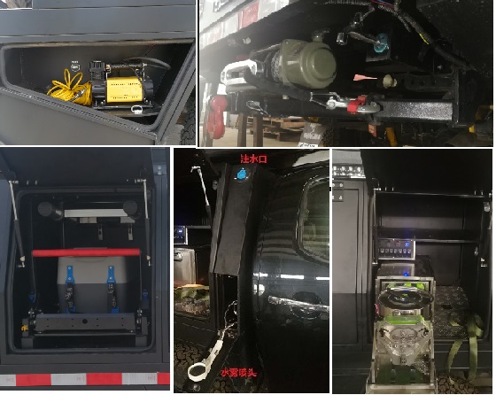 | 备注 | 1.该车可选装前保防护装置,此时车长为5735mm,前悬为1155;2.ABS系统控制器型号:V3G-N/生产企业:DENSO CORPORATION Daian Plant;3.发动机最大净功率为130kw;4.可选装不同形式轮胎轮辋;5.该车配备勘察设备,绞线盘及野外勘察给养装置. | ||