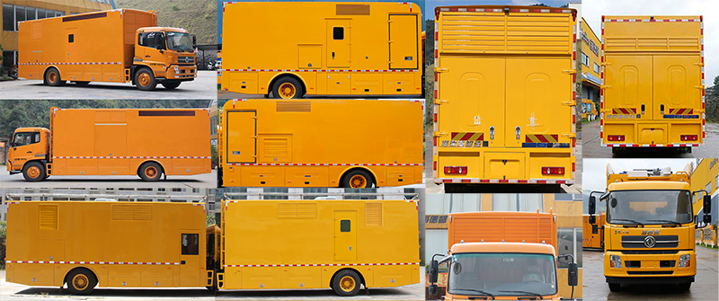 | 备注 | 1、选装升降照明灯;车身两侧选装不同数量及位置的开启门、百叶窗、上掀门,选装爆闪灯、led显示屏,车厢前部选装加大尺寸百叶窗,随底盘选装导流罩、卧铺侧窗装饰板、驾驶室前围扰流板、前雾灯;2、专用装置为电源系统、电缆绞盘,主要用于抢险救灾以及重大政治会议、赛事活动等的应急电力支援; 3、左右侧及后防护采用箱体代替,材料Q235A,箱体后防护离地高425mm;4、ABS生产厂家及型号:威伯科汽车控制系统(中国)有限公司,4460046440;东科克诺尔商用车制动系统(十堰)有限公司,3631010-C2000;5、整车长度为9870时,对应的前悬/后悬为1430/2840,接近角/离去角为20/9;整车长度为9360时,对应的前悬/后悬为1430/2330,接近角/离去角为20/13。 | ||