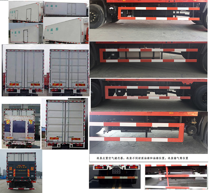 | 备注 | 随底盘选装驾驶室;随底盘选装前面罩,前保险杠及前部灯具,选装新后视镜;选装后部灯具.驾驶室卧铺侧窗选装装饰板;驾驶室前围选装扰流板;选装前雾灯;选装前面罩;驾驶室顶部装饰灯为选装件;选装升降尾板,尾板收起状态时的水平长度为295mm;可选装其它厂家功率相当的制冷机组;厢体顶部封闭,不可开启,侧面选装开门和不开门;侧防护:材质Q235,螺栓连接;后下防护:材质Q235,螺栓连接,断面尺寸100X50mm或120X60mm,离地高度540;安装具有卫星定位功能的行驶记录仪.装有ABS,ABS 8;ABS型号:3631010-C2000,生产厂家:东科克诺尔商用车制动系统(十堰)有限公司.随底盘选装限速装置,限速89km/h. | ||
