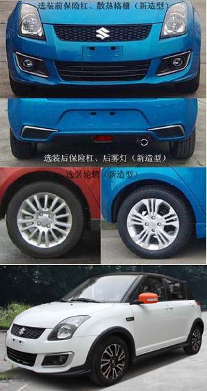 | 备注 | 1、该车型选装(新造型)前/后保险杠,进气格栅,后雾灯,轮辋。2、选装前/后/侧包围,运动铝车轮。3、选装不带SUZUKI字标。净功率:74KW,带OBD,装配防抱死制动系统(型号:ER70;生产企业:大陆泰密克汽车系统(上海)有限公司)。 | ||